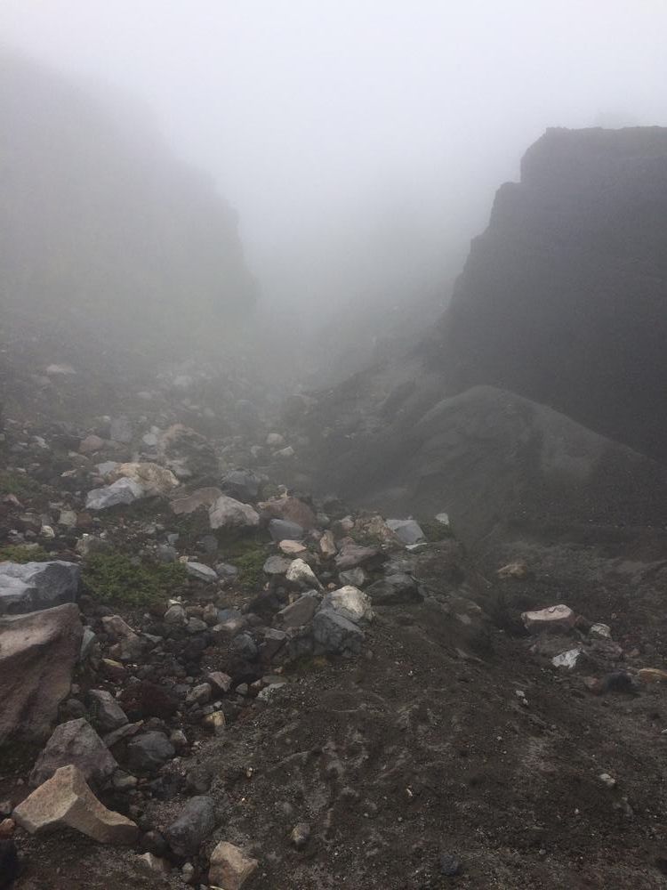 In the beginning the way led through tropical rain forest. The further we came up, the more the vegetation thinned out and the worse the path became. Until finally there was no more way at all, but only loose stones and earth, on which you had to pull yourself up with all fours. After about 4 hours we both reached the summit, which rises 1600 meters above sea level. I could not see much from up there. Even the view to the crater was blocked by a cloud. But well - the path is the goal! Besides, I could see many strange and colorful insects at the top of the crater.